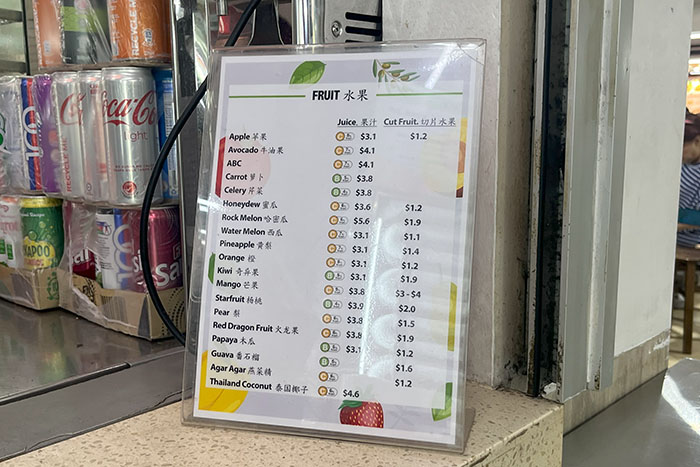 バクテーのお昼ごはんの後、ホーカーの生ジュースで涼みました。