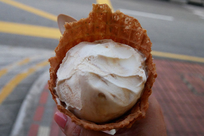 店内でワッフルコーンを焼いているみたいでとてもいい香りがしたので、カップではなくコーンにしました。