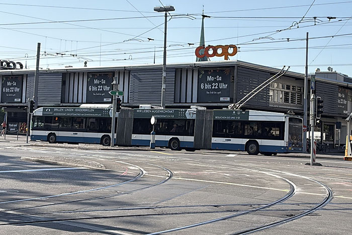 手前の連結されてるバスはトロリーバスですね。
