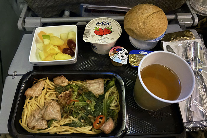 シンガポール着陸前の朝ごはんはチキンヌードルでした。