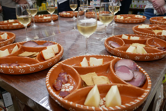 市場でお土産用の缶詰を試食しながらワイン飲んだり。