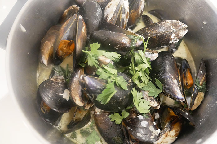 市場でムール貝を買って、ワイン蒸しを作ったりもした!